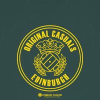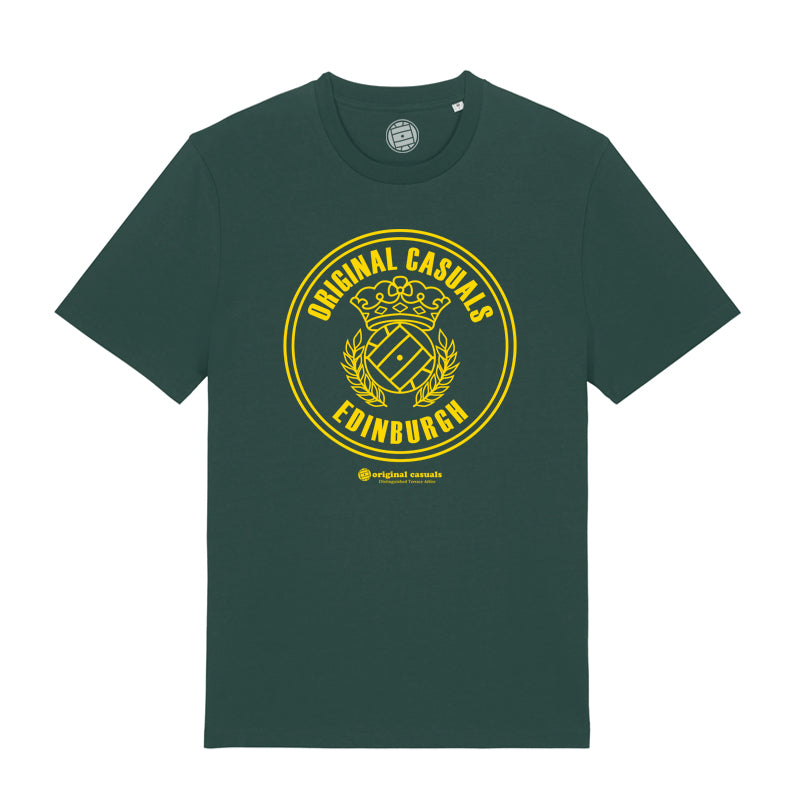 Original Casuals 'OC Badge - Hibs 80s' Glazed Green T with Yellow print