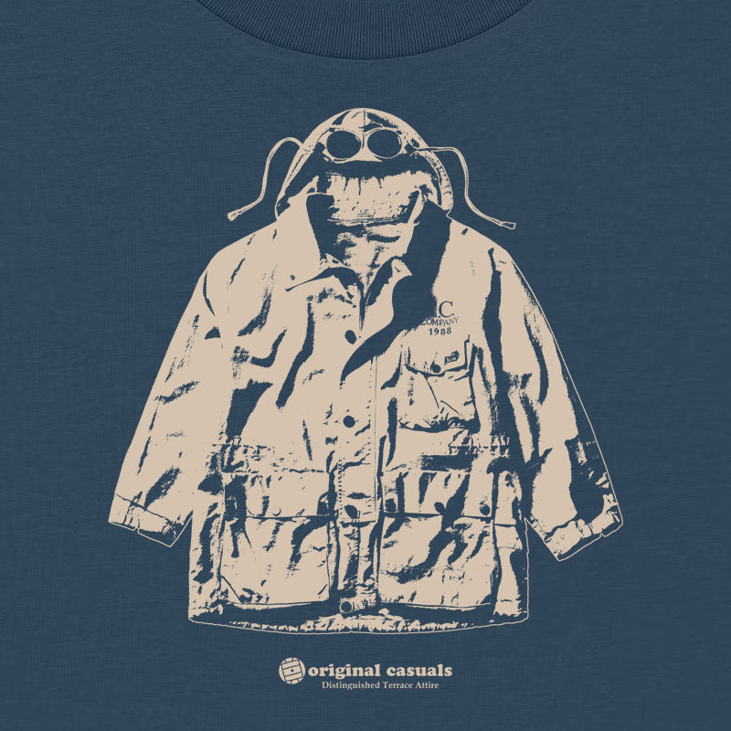 This design draws from the grit and function of classic European outerwear, reworked through an Original Casuals lens that celebrates utility, attitude and terrace culture. The illustration nods to late 80s industrial style and cold weather practicality, where form followed purpose and clothing was built to endure long days and harder nights. Stripped back, textured and unapologetically honest, it reflects a mindset rooted in resilience, movement and understated confidence, made for those who appreciate heritage influences without the need to shout.